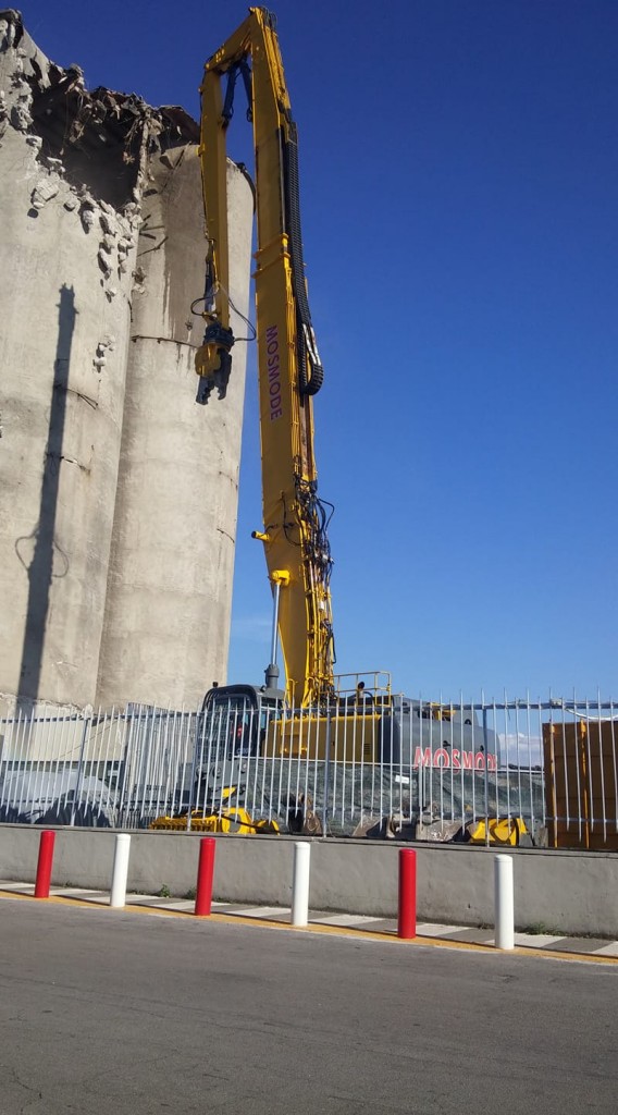 L’amianto in passato era ovunque, ed è assolutamente ragionevole pensare che vi sia in piccola percentuale anche nei silos. Di fatto i lavori di demolizione si stanno svolgendo con l’isolamento totale dell’intero molo, inoltre vengono costantemente bagnati durante la demolizione neutralizzando tutte le polveri.