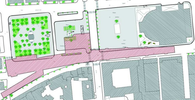 La sistemazione degli spazi esterni prevede infine il ripristino della pavimentazione, a seguito dello scavo condotto per la realizzazione dei locali tecnici sotto il piano della Piazza Castelnuovo, mediante l’utilizzo di lastre di marmo di Billiemi e lastre di pietra del tipo arenaria (s= 2 cm) e cordoli in pietra calcarea per i marciapiedi, nonché la ripiantumazione degli esemplari di Phoenix Dactilifera, spostati durante la fase di cantiere. La scelta dell’utilizzo della pietra calcarea deriva dalla volontà di ripristinare lo stato attuale dei luoghi, dando così continuità ai materiali attualmente impiegati nelle opere contigue.