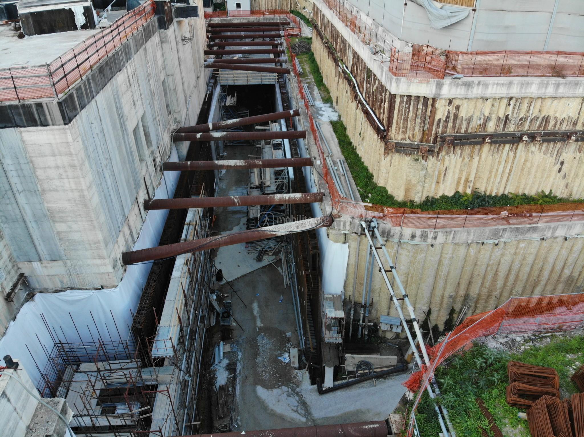 La fermata è strutturalmente quasi interamente completa, infatti la SiS prima di abbandonare il cantiere sta provvedendo a realizzare la soletta di copertura della galleria esistente e della fermata.