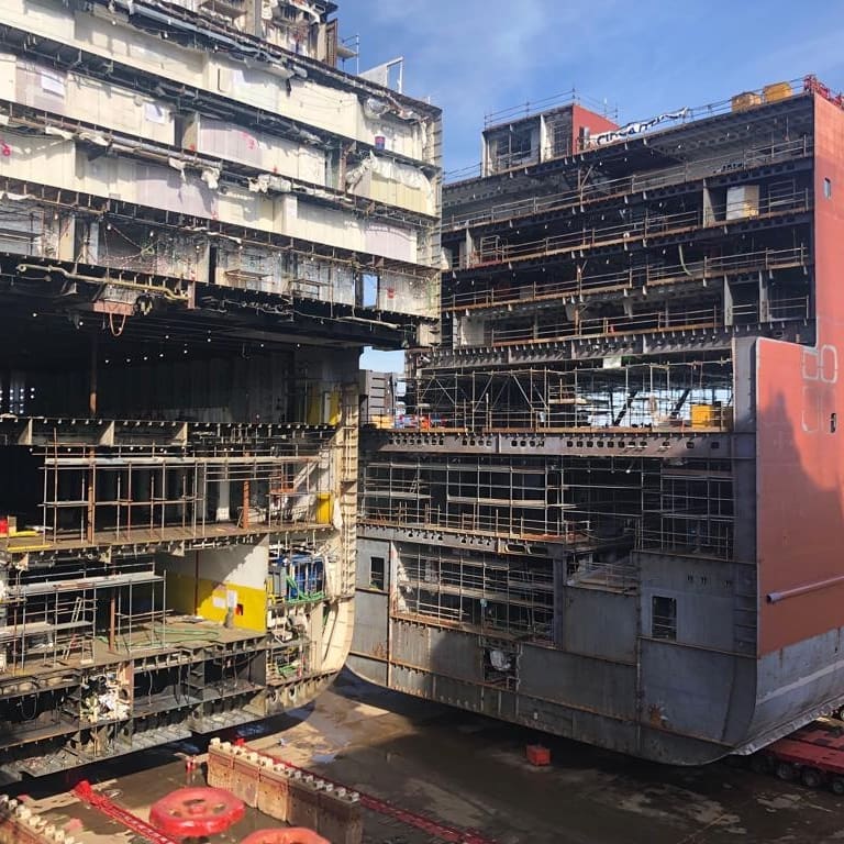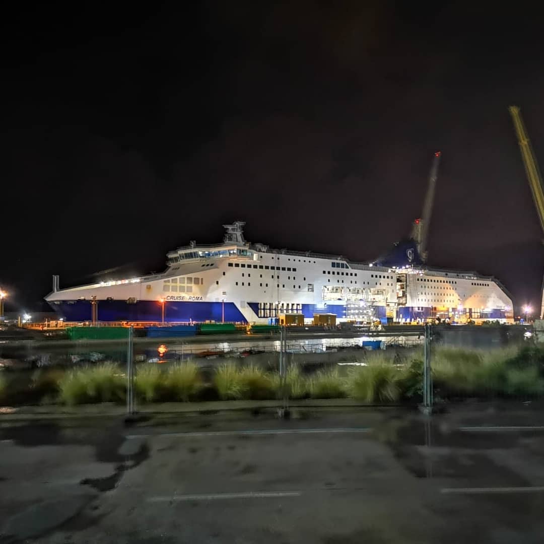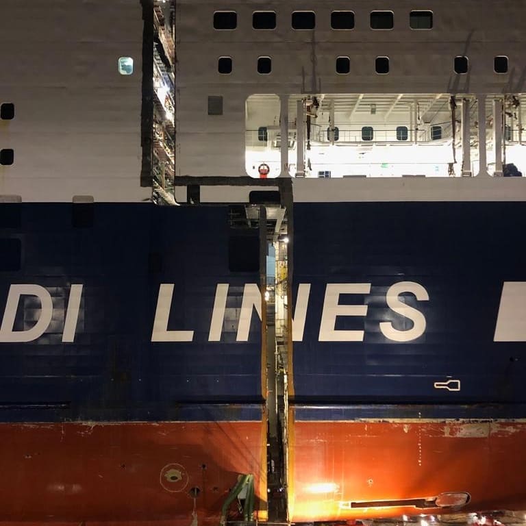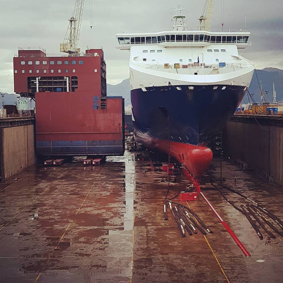 Dopo l’arrivo del traghetto di Grimaldi Lines avvenuto la scorsa settimana, le lavorazioni per allungare lo scafo della nave sono iniziate.