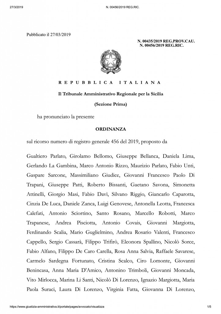 Nel frattempo riportiamo qui copia integrale dell’ordinanza per una più completa lettura. Nei prossimi giorni (o settimane) il Tar entrerà nel merito del resto del procedimento.