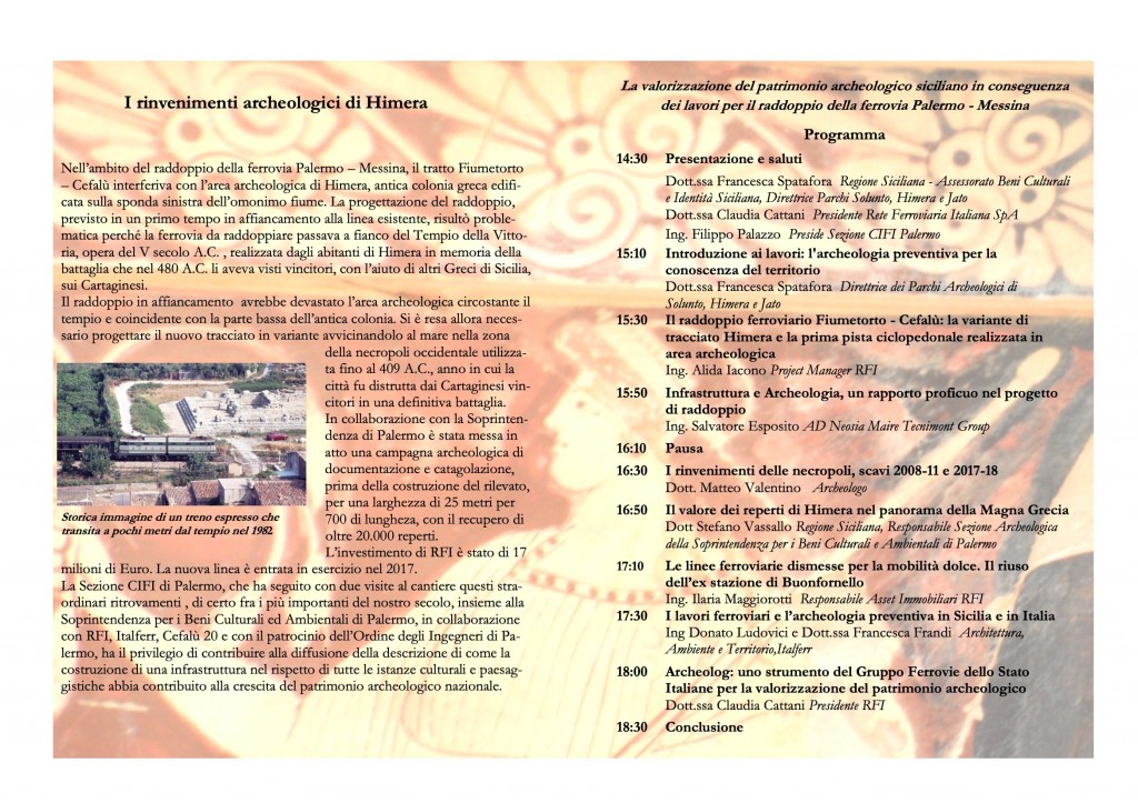 Il sottotitolo “La valorizzazione del patrimonio archeologico siciliano in conseguenza dei lavori per il raddoppio della ferrovia Palermo – Messina” riassume il felice esito della dialettica contrapposizione fra la costruzione di una nuova infrastruttura e la salvaguardia del patrimonio culturale ed ambientale.