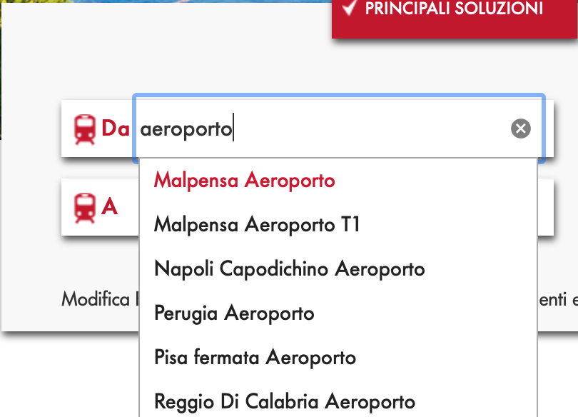 Per dovere di cronaca abbiamo fatto una prova inserendo la parola “Aeroporto” e vengono fuori tutte le stazioni ferroviarie dei maggiori aeroporti italiani.