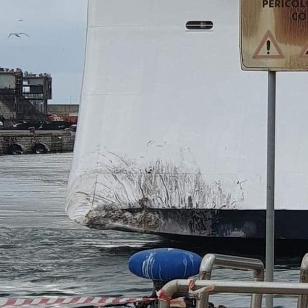 In fase di manovra la grossa nave da crociera ha urtato il molo.