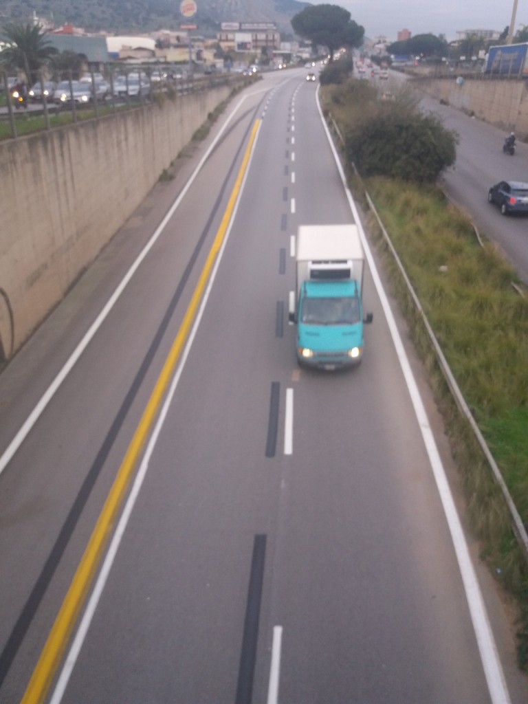 Pregasi notare, inoltre, guardrail sgangherato, vegetazione spontanea ai bordi, muri in cemento degradati….insomma tipico paesaggio di degrado panormita, alla “Anna” di Ammaniti…