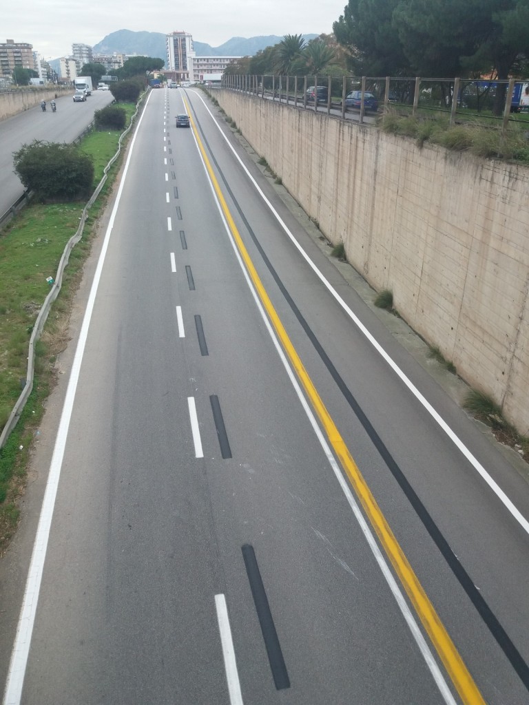 Dopo ANNI (non dimentichiamolo mai) viale Regione Siciliana si appresta ad accogliere nuovamente al di sopra del suo asfalto la segnaletica orizzontale. Segnaletica che è obbligatoria secondo il codice della strada, ma che è stata deliberatamente ignorata, vergognosamente ignorata, da tutti gli organi comunali preposti.L’arteria stradale più trafficata della Sicilia, una dei fondamentali assi di attraversamento di Palermo, è rimasta per tantissimi mesi uno strato incompleto di asfalto, nemmeno tanto regolare, e nulla più.