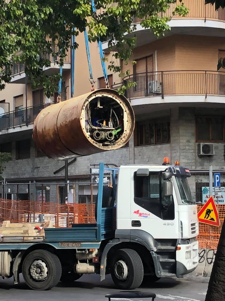 La talpa è stata riportata nell’area di cantiere tra la via Guardione e a via Francesco Crispi