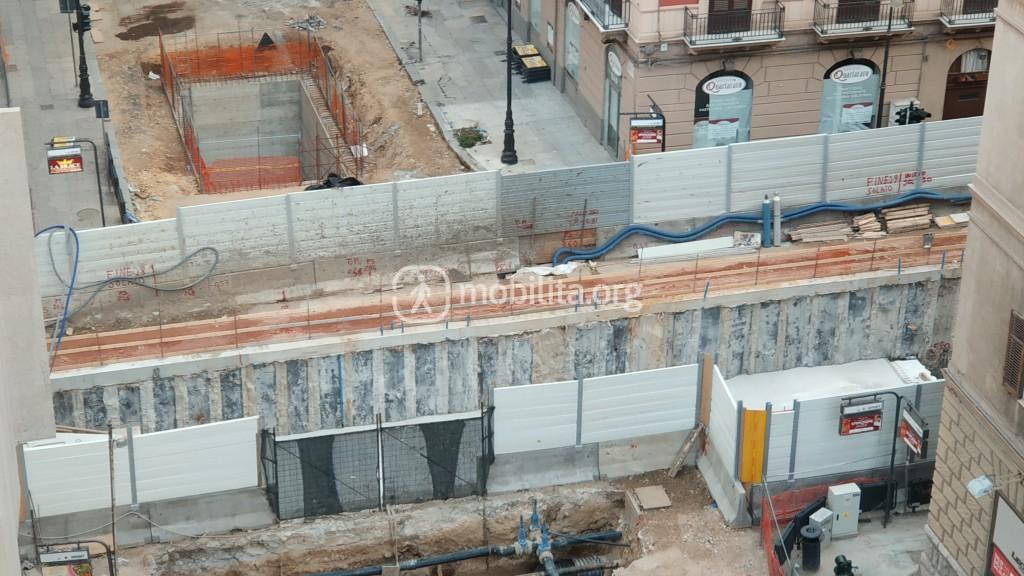 Il primo cantiere interessa la strada da valle a monte e prevede la realizzazione della galleria ferroviaria di collegamento tra le fermate Porto e Politeama sotto via Amari.