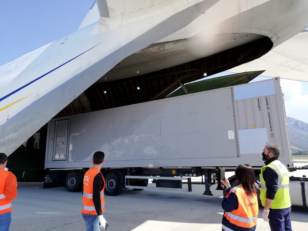 Nello scalo aereo palermitano, i tecnici di GH Italia Palermo e XPH Xpress Handling hanno trasferito nella pancia dell’aereo il convertitore costruito in Sicilia e destinato a un parco eolico australiano