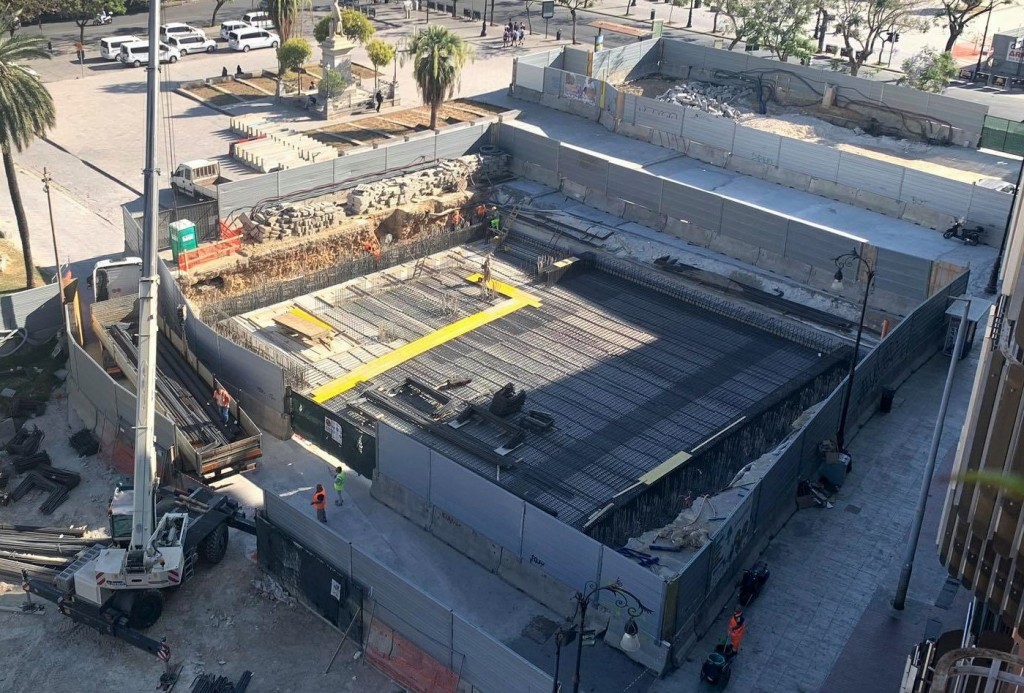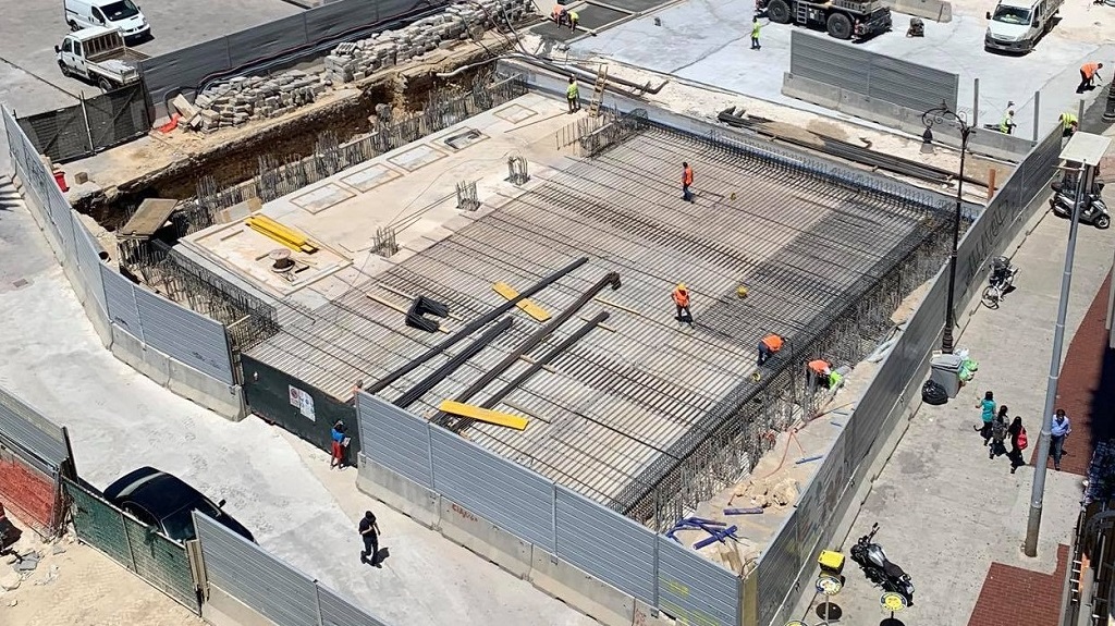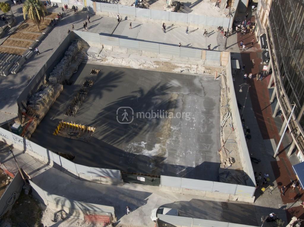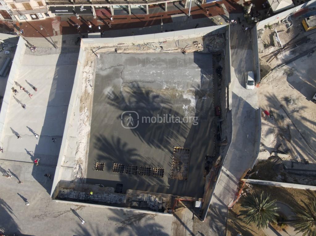 Tornando all’argomento del giorno, vogliamo ricordare come ad inizio Giugno, terminata la posa del magrone era iniziata la posa delle armature per il solettone che costituirà la copertura della nuova stazione Politeama.