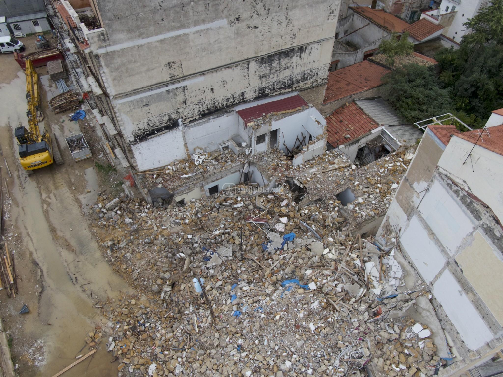 Come visibile dalle foto l’abbattimento degli edifici produce un’elevata mole di detriti che dovranno essere rimossi con escavatori e portati in discarica.
