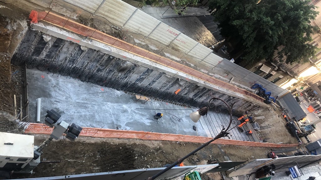 In un solo mese sono state ultimate le palificazioni, si è provveduto a rimuovere la terra fino allo strato di posa del solettone, realizzato il solettone.