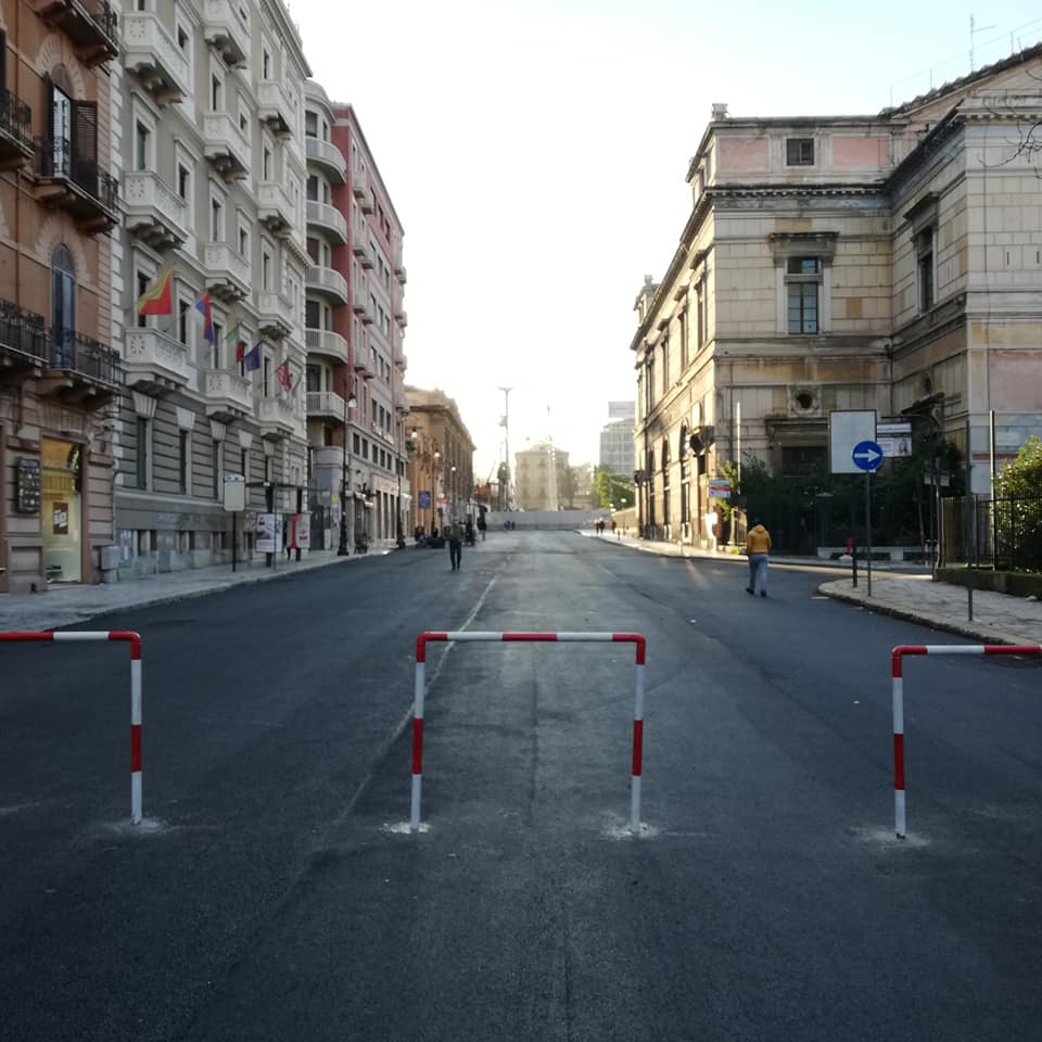 Al momento i cantieri del collettore fognario tra via Roma e via Amari bloccano la realizzazione di un percorso pedonale, ma non è escluso che ciò possa essere realizzato a fine lavori. Purché non si tratti dell’ennesima opportunità mancata, perché se ne contano tante. Ricordiamo la posa del basolato su via Maqueda o di una possibile “ramblambla”. Insomma, ad oggi ancora nulla ma solo orribili paletti.
