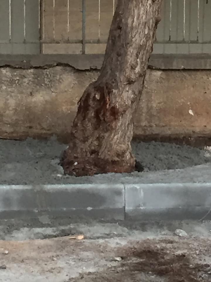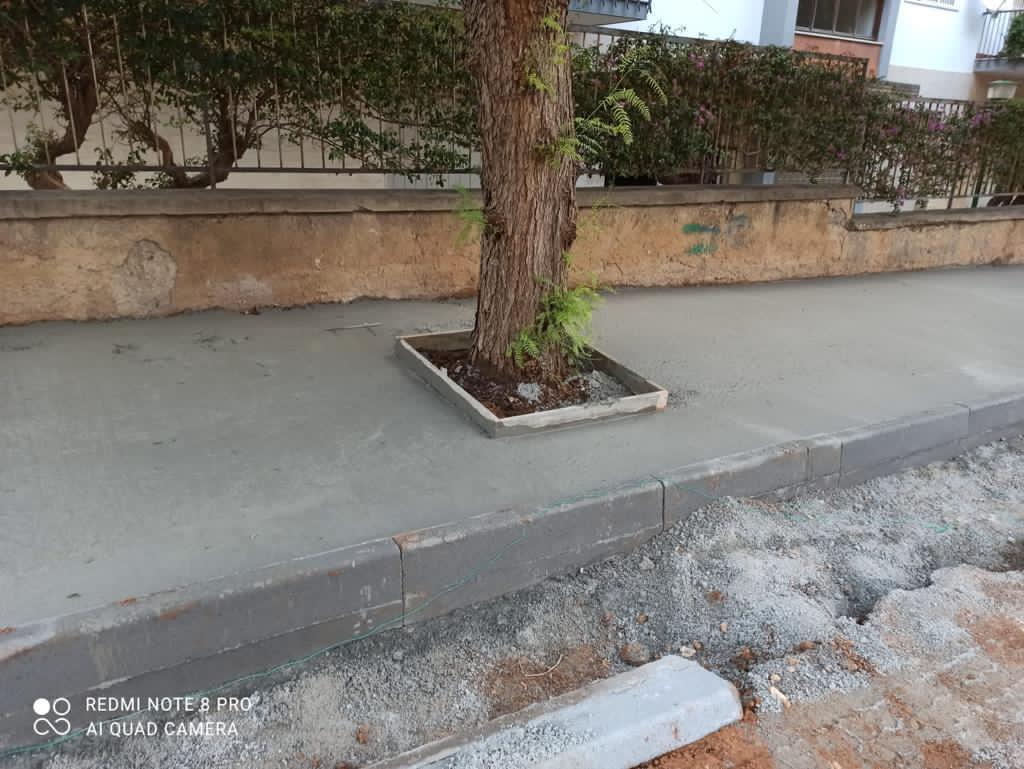 Un filare di alberi viene del tutto inglobato nei nuovi marciapiedi in corso di realizzazione. Cosa prevedeva il progetto?
