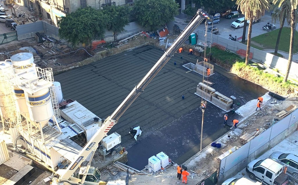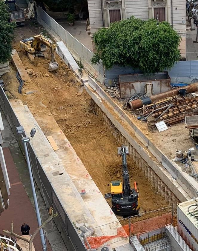 Questi scatti invece mostrano i lavori all’angolo tra corso Ruggero Settimo e via Amari. Dopo aver terminato la realizzazione dei micropali, si stanno ultimando le fondazioni con i pali di fondazione.