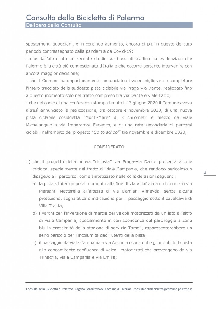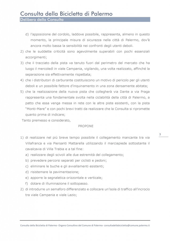 E riportiamo qui integralmente la nota inviata al Servizio Mobilità Urbana del Comune di Palermo.