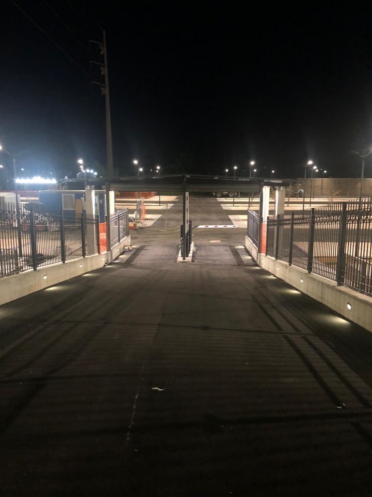 Una sbarra regola gli ingressi e le uscite e l’illuminazione rende le aree di sosta ben visibili anche nelle ore notturne.