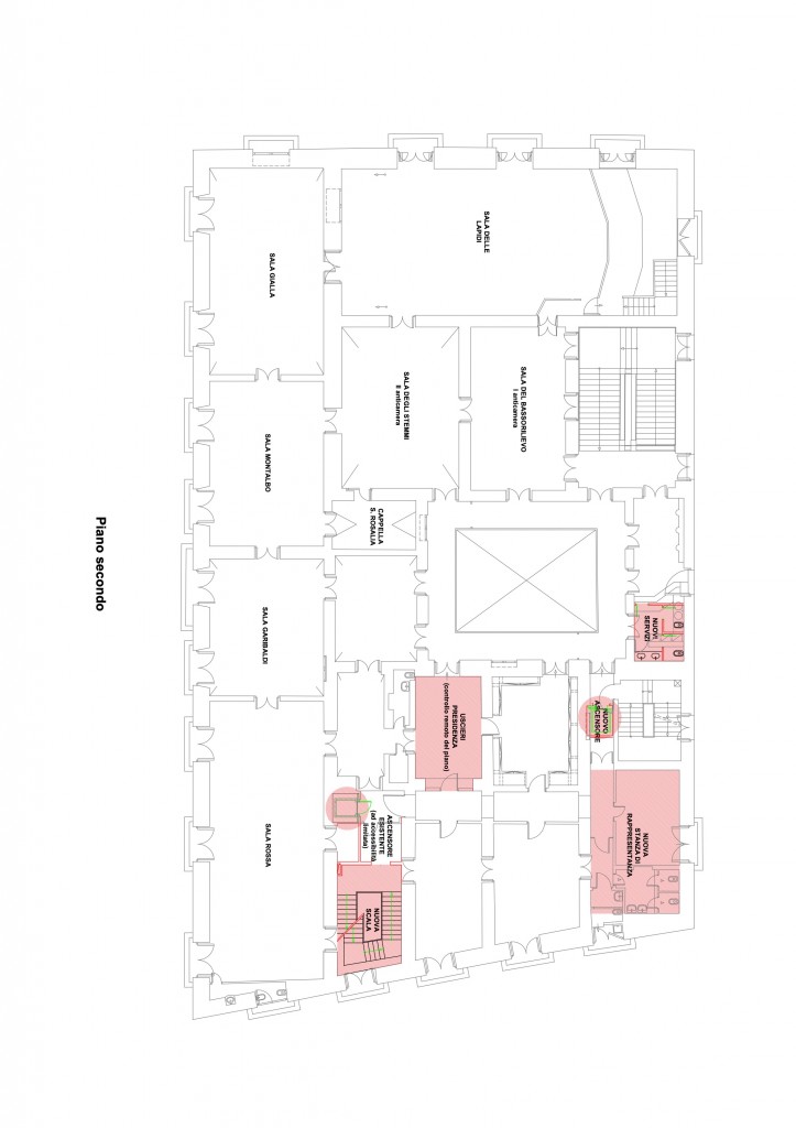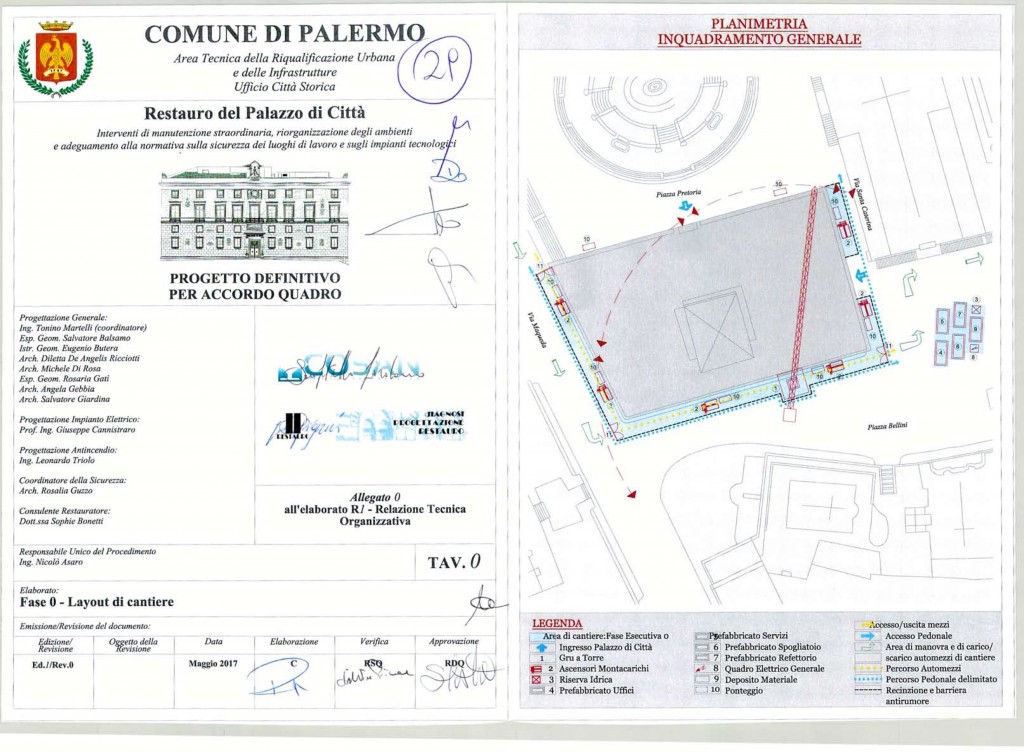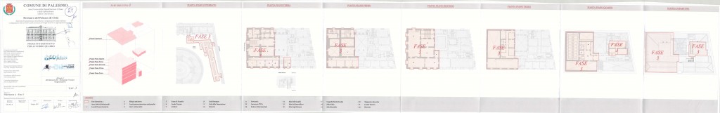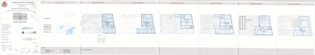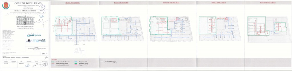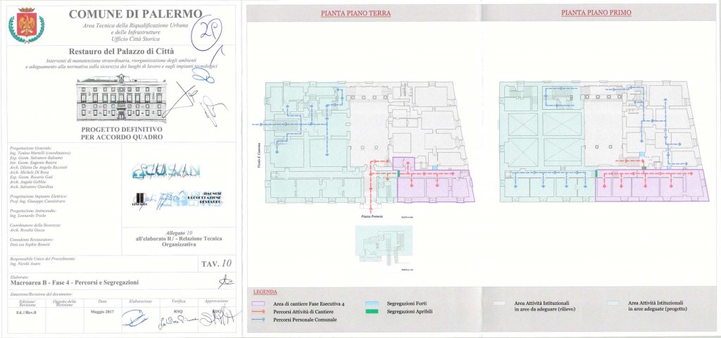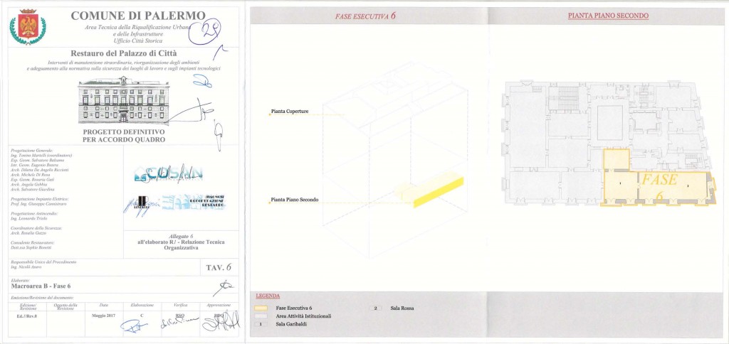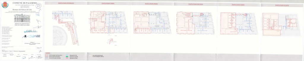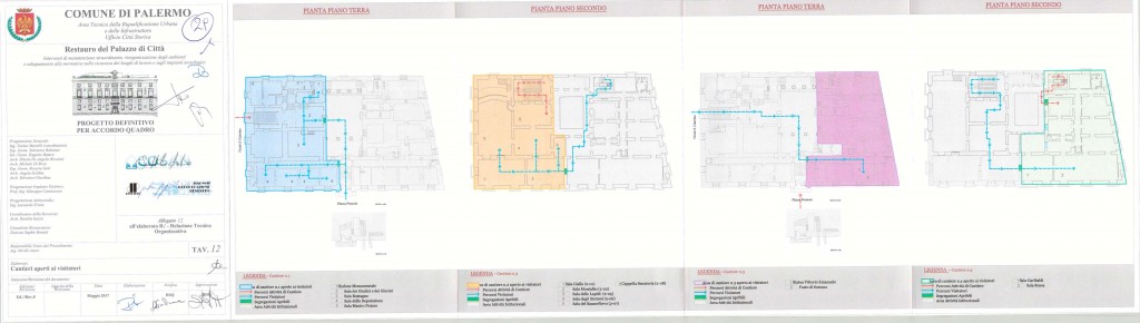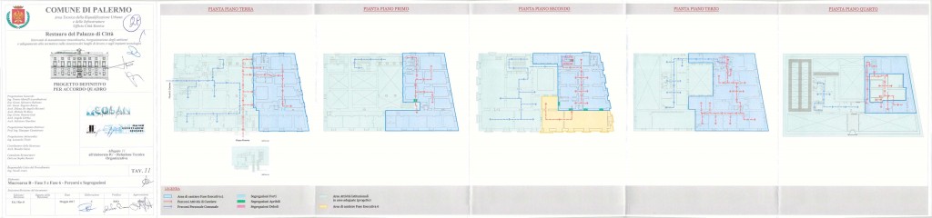 L’intervento sarà eseguito in due macroaree, A e B una per ogni metà dell’edificio, prima quella dal lato del vicolo di S. Caterina, che comprenderà quindi Sala delle Lapidi e gli uffici del Consiglio Comunale e poi quella dal lato di via Maqueda, che comprenderà la Segreteria Generale e gli uffici del Sindaco.