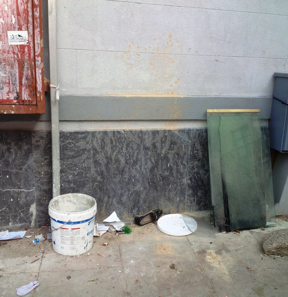 I pub nella zona lasciano sacchi neri pieni di bottiglie e i negozianti della zona decine e decine di scatoli di cartone. I vigili NON esistono.