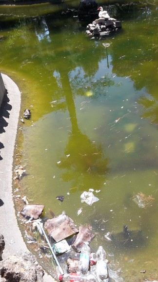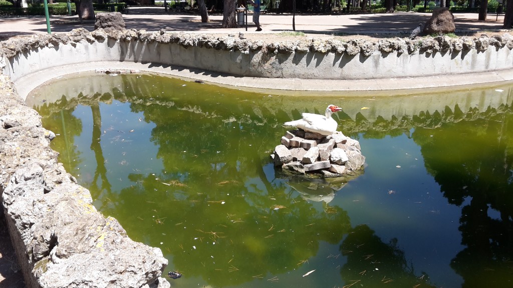 Non si potrebbero spostare quei poveri pennuti nell’altra fontana? E magari pulire questa e cambiare l’acqua con acqua pulita?