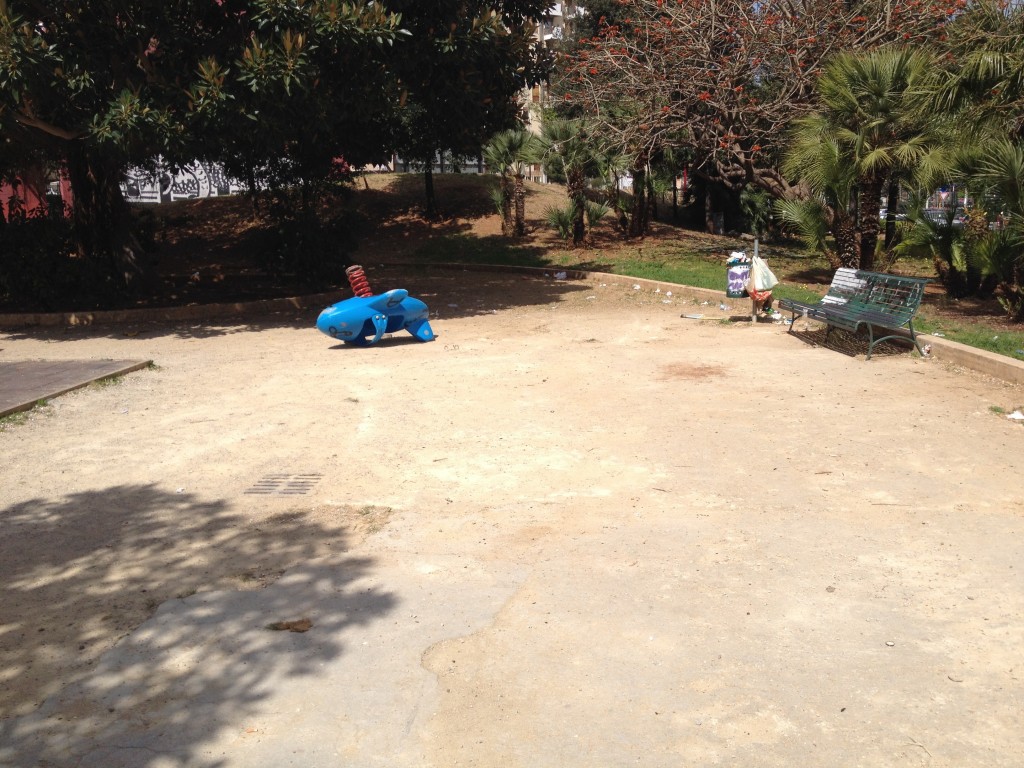 oggi trovandomi nei paraggi ho pensato di portare mio figlio nel piccolo parco giochi dell’area verde di via nazario sauro (in prossimita’ del palazzo dei sogni). Mai scelta fu piu’ sciagurata.