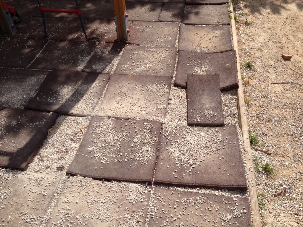 – la pavimentazione dell’area gioco e’ stata in parte divelta
