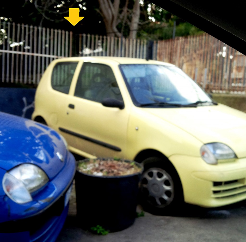 Naturalmente, per evitare che l’assenza temporanea di tale struttura dal luogo in cui viene normalmente incatenata possa rappresentare per qualcuno una tentazione, l’ambulante ritiene opportuno occupare con la propria auto tale spazio comune quasi a voler ricordare a tutti di aver acquisito ormai un diritto di cui nessuna autorità, finora, sembra possa o voglia privarlo.