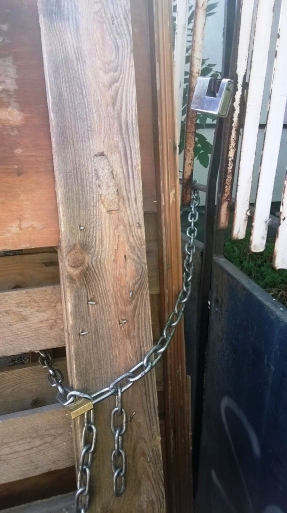 Diciamo che, in assenza di indizi in tal senso, gli si concede il beneficio del dubbio. Ciò che senza ombra di dubbio è abusiva è l’occupazione indebita di uno spazio comune mediante una struttura perennemente incatenata lì.
