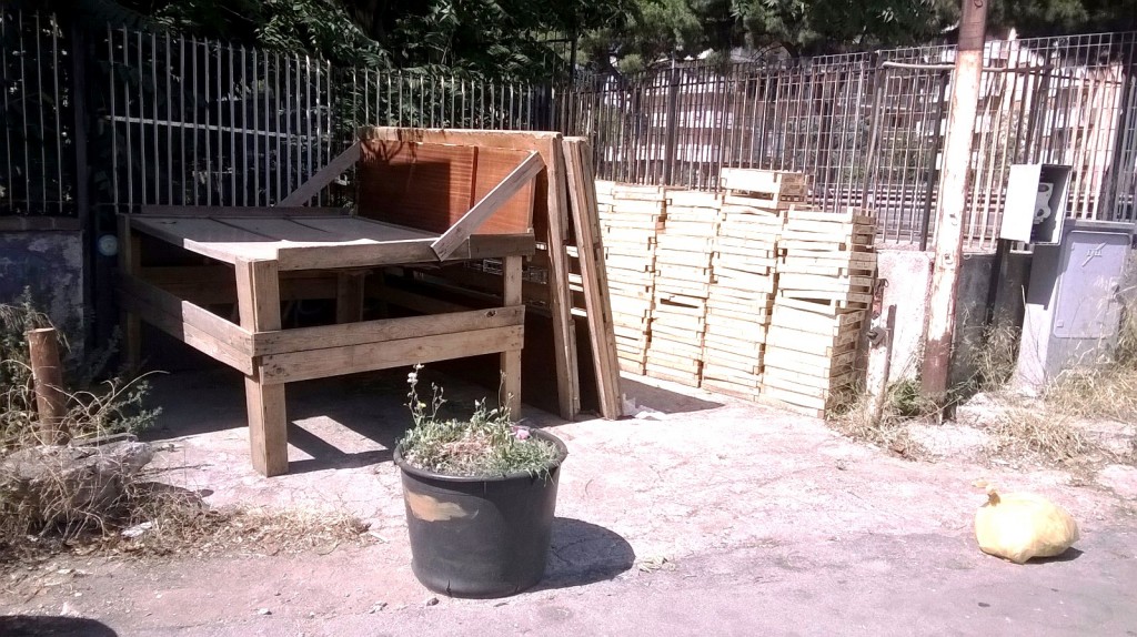 Sia chiaro: l’intento di tale segnalazione non è quello di impedire a un concittadino di lavorare, ci mancherebbe altro. Tuttavia, decenza vorrebbe che un venditore ambulante, al termine della propria giornata di lavoro, oltre a lasciare la porzione di area comune utilizzata nelle stesse condizioni in cui l’ha trovata, riportasse con sé gli “strumenti” del lavoro, evitando pertanto di occupare con gli stessi spazi che appartengono a TUTTI. C’è da aggiungere, inoltre, che in presenza di ingombranti abbandonati, i nostri cari concittadini fanno del loro meglio per trasformare le zone interessate in vere e proprie discariche a cielo aperto (cosa che avviene regolarmente anche qui da quando tale struttura in legno permane costantemente incatenata nei pressi della via Raffaello n. 3).